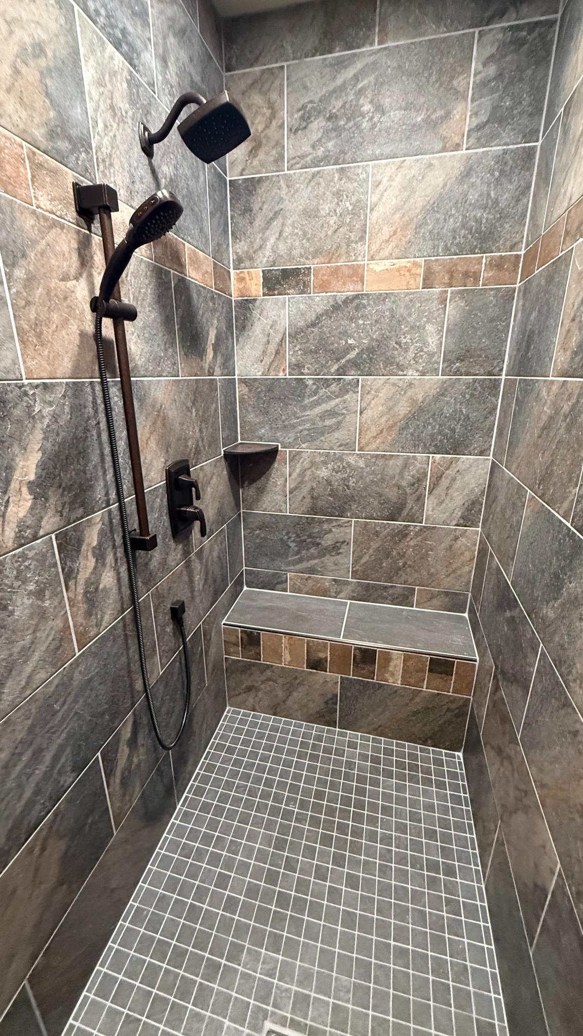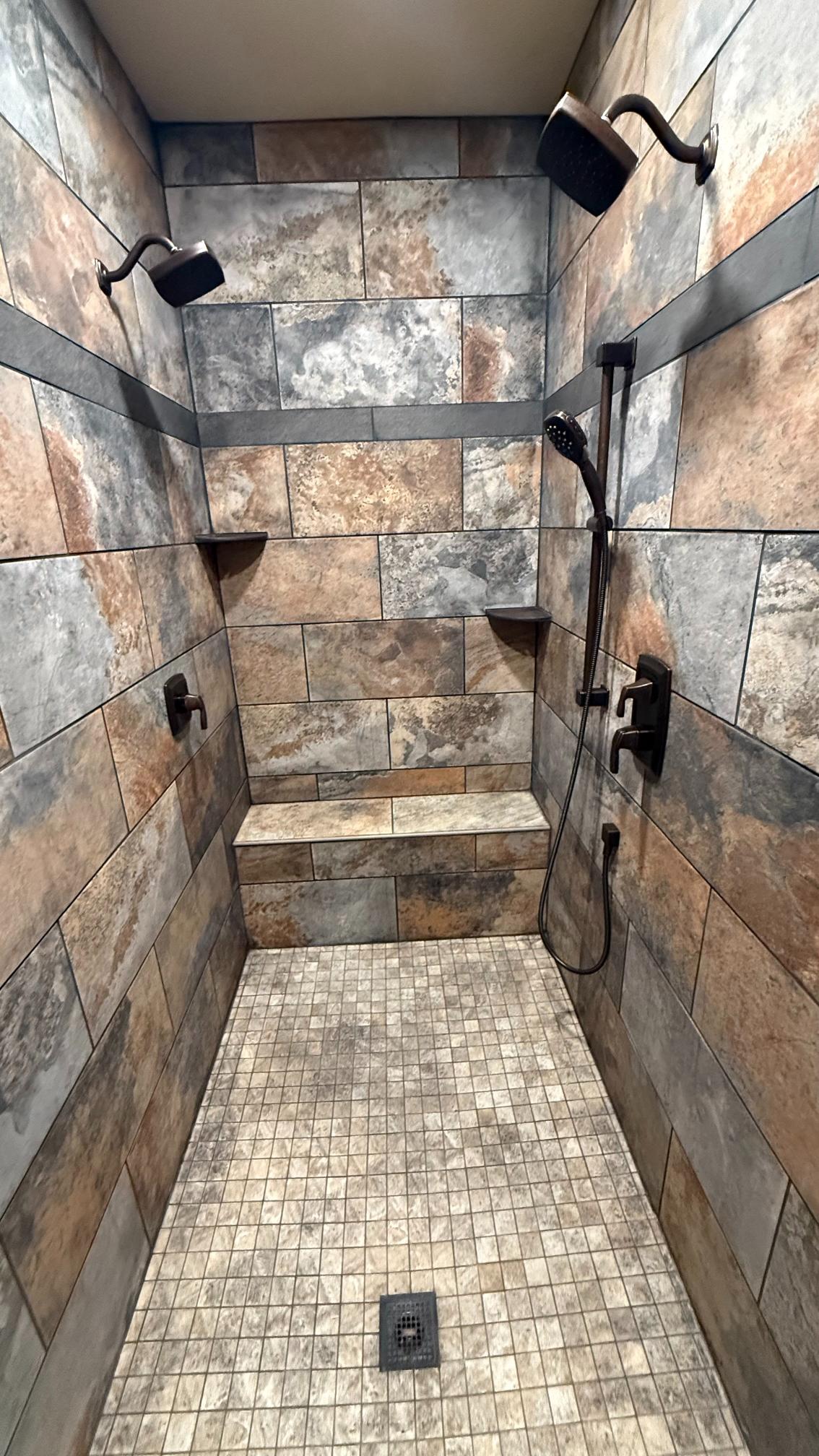 - Flooring: Compliment your new custom showers and cabinets with quality flooring to match! We offer tile and grouting services, as well as waterproofing for all types of flooring.